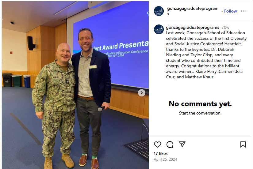 - Krauz was an award winner at Gonzaga’s Diversity and Social Justice Conference.