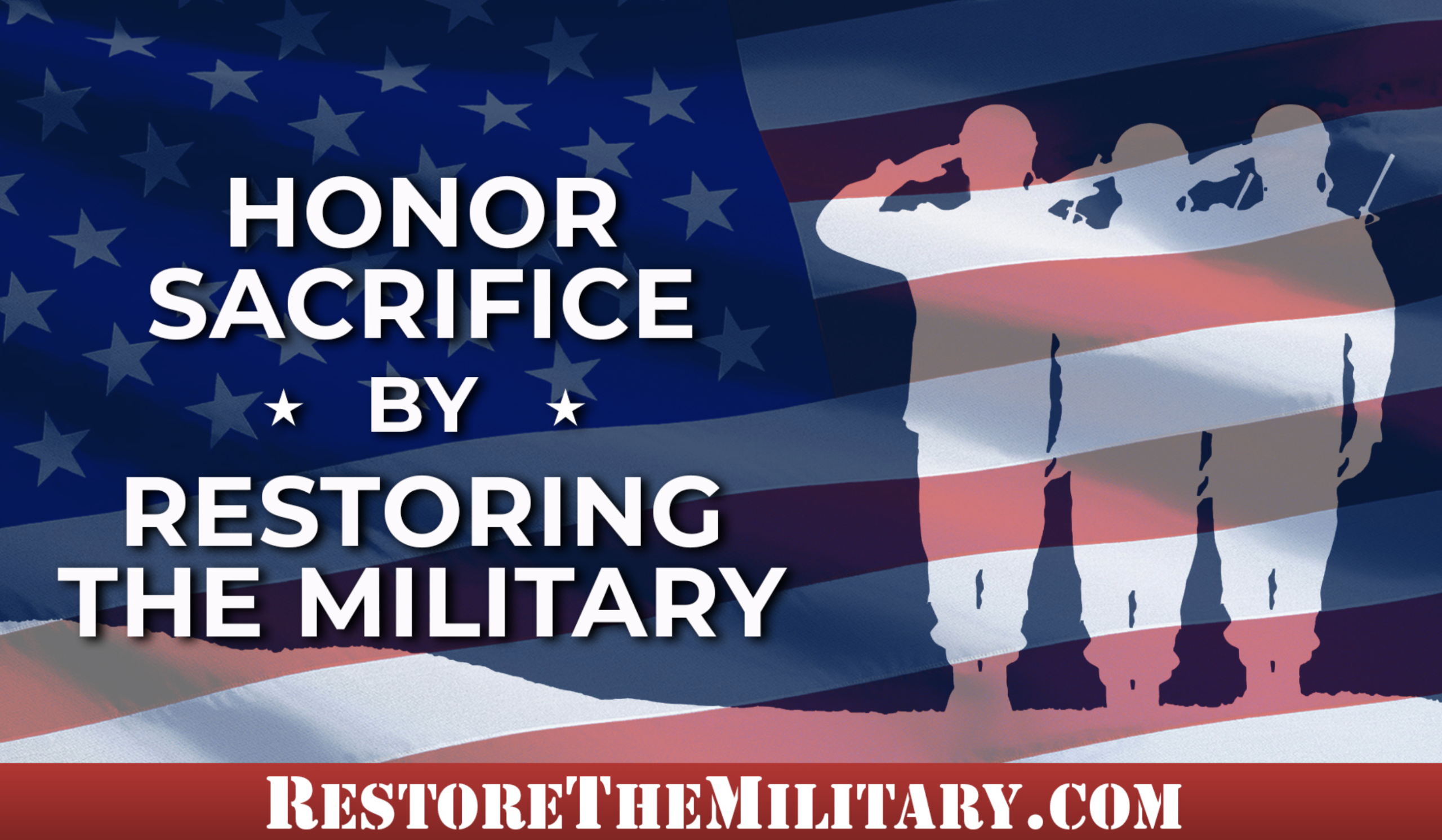 On Veterans Day, Honor Sacrifice by Restoring the Military’s Warrior Ethos Read More Sen. Jim Banks Just ID'd Another Woke General Pushing Affirmative Action Read More Catholic Faith Under Fire: A Destructive Drawdown of American Soldiers’ Faith Formation Read More Former Air Force Academy Professor Equates TPUSA with the KKK Read More Gen. Chris Donahue is the '21st Century Patton' the War Department Needs Read More Trump's Gaza Deal is Doomed to Fail Because We Haven't Learned from the Past Read More Seeding the Personnel of the Military Corporate State, Part Two Read More Seeding the Personnel of the Military Corporate State, Part One of Two Read More Commentary: The Military Corporate Complex is Quietly Winning Donald Trump's Second Term Read More From West Point to Woke Point: The Long March Through the Ranks Read More Social Justice Warriors Shouldn’t Control West Point Read More The Most Important Spending Bill No One is Talking About Read More Mixed Reviews of the Naval Academy Board of Visitor’s Meeting Read More Military Officer Treated as a Terrorist Following Religious Objection to COVID Shot Read More EXCLUSIVE VIDEO: Marine Corps Training—Involuntarily Celibate Men Could Be 'Insider Threats' Against Military Read More Get ROTC Programs Out of Blue States, Cities, and Colleges Read More Congress Must Cement the Restored Character of the Pentagon Read More We're Winning the Battle to Restore America's Military Read More Why Are There So Many Social Justice Warriors at America’s Military Service Academies? Read More Congress Must Kill DEI Before It Kills Our Military Readiness Read More New Leadership at the U.S. Naval Academy Could Change the Game Read More Could Trump Use National Security Measures to Block Offshore Wind Projects? Read More Gen. Flynn Speaks Truth at West Point Board of Visitors Meeting Read More Charlie Kirk Asks Tough Questions at U.S. Air Force Academy Oversight Meeting Read More Drones are Reshaping Tomorrow’s Battlefield, with Will Thibeau Read More Put the ‘War’ Back in the Naval War College Read More BREAKING: Retired Marine Denied Access to Military Base for Wearing a Pro-Trump Hat Read More Military Members Harmed by COVID Vax Mandate Seek Relief Read More Jim Banks is Leading the Way to De-Woke the Military. The Rest of the Senate Must Follow. Read More The Air Force Academy Deserves Real Oversight. Will the Board of Visitors Follow Through? Read More West Point Leadership Thumbs its Nose at the Trump Administration & Loses Read More DEI Still Infects West Point Read More PREMIERE: Could America Lose WWIII? | Restoration Spotlight Read More Leftist Accrediting Organizations Influence U.S. Military Academies Read More INTERVIEW: Air Force Chaplain Allegedly Disciplined for Preaching Biblical Values Read More Is America Prepared for a War with China? Read More EXCLUSIVE: Service Academy's Woke Leadership Removed Read More EXCLUSIVE: Naval Academy Ignored Standardized Test Scores for Class of 2025-2028 Applicants Read More BREAKING: Senate Must Reject Woke Senior Military Officers Up for June 24 Appointments Read More Seeking Justice for Military Members Harmed by Unlawful Orders Read More The Coast Guard Academy Went From “Always Ready” to “Always Woke” Read More The U.S. Merchant Marine Academy Has Suffered Under Woke Leftist Leadership Read More Retired Air Force Brigadier General Soils His Uniform to Defend Trans Ideology in the Military Read More De-Woking the Air Force Academy Must Be a Major Focus for the Trump Administration Read More Trump Has More Work to Do Abolishing DEI at the Naval Academy Read More Until President Trump Fires Woke Leadership, West Point Will Never Get Back to Forging Warriors Read More Leftist Generals Make their Political Views Known on Social Media Read More EXCLUSIVE: Military Academy Still Using Discriminatory Quotas Read More West Point Trades Real Reform For Illusory Paper Compliance Read More Woke General Considered for Top Special Forces Command Position Read More Audits Reveal Complete Lack of Accountability in the Defense-Industrial Complex Read More Drones: We Aren’t Ready for the Next War Read More Mr. President, Fire the Woke Admiral Biden Promoted to the Joint Chiefs Read More Biden Put Recruits at Risk to Increase Military Enlistment Read More Trump Slays Wokeism at the U.S. Merchant Marine Academy Read More EXCLUSIVE: The Military's Dangerous Double Standard for Women in Combat Read More Admiral Derek Trinque is Everything Wrong with the Woke Navy Read More Under Biden, Military Training Standards Fell to New Lows. Pete Hegseth Must Raise the Bar—and Fast Read More EXCLUSIVE: Military Academy Alters Historic Painting to Appease Anti-Christian Zealot Read More PROMISES KEPT: Trump Scrubs Cancerous DEI from the Military. It's Already Healing. Read More Col. Allen West: Trump Ended Biden's Tyranny Against Heroic Veterans (EXCLUSIVE) Read More Trump Must Investigate Biden's Army Secretary to Enact Pentagon Reforms Read More Experts: "De-Woke the Military or Lose the Next War" Read More Part Two: The Armed Forces Need to be Put Back in the Hands of Soldiers—Pete Hegseth is the Person to Do It Read More The Armed Forces Need to be Put Back in the Hands of Soldiers—Pete Hegseth is the Person to Do It Read More Top 10 Woke Leaders of the Military to Fire on Day One Read More